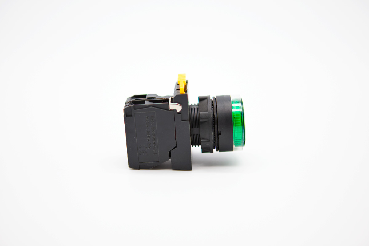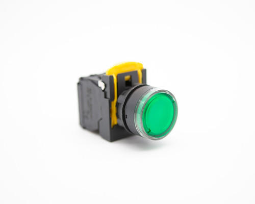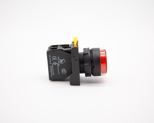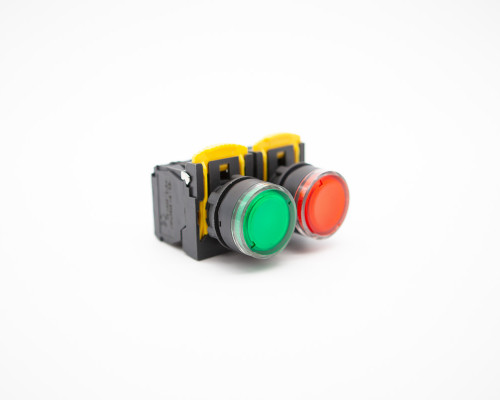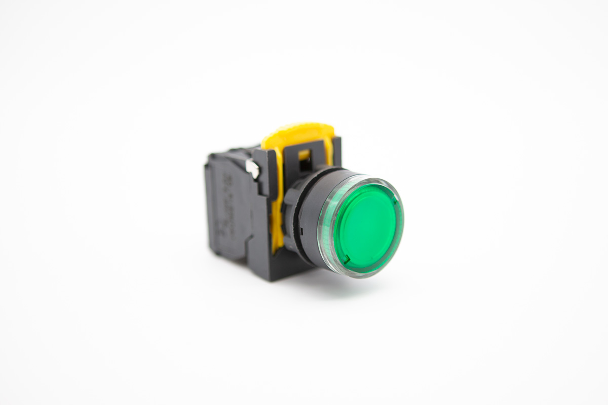 照光式按鈕開關為按鈕開關附指示燈泡,燈泡部份採用LED燈泡與一般燈泡相比,少了變壓器的空間,且消耗功率極低,適用於交流50Hz或60Hz,額定工作電壓110V至240V控制電路中,作為電磁起動器、接觸器、繼電器及其他電器線路的控制之用。
